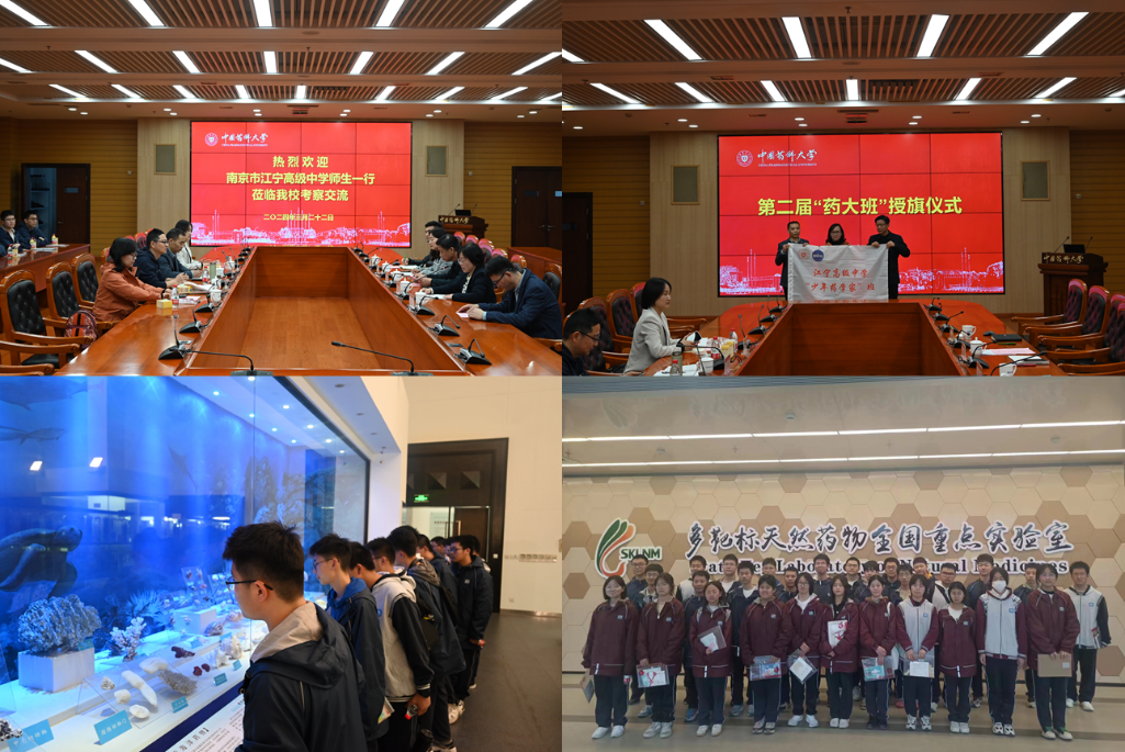开班仪式上,双方代表向南京市江宁高级中学第二届“药大班”授予班旗并合影留念。仪式结束后,江宁高级中学师生一行参观了公司江苏药学博物馆、新实验大楼、樱花园等地。