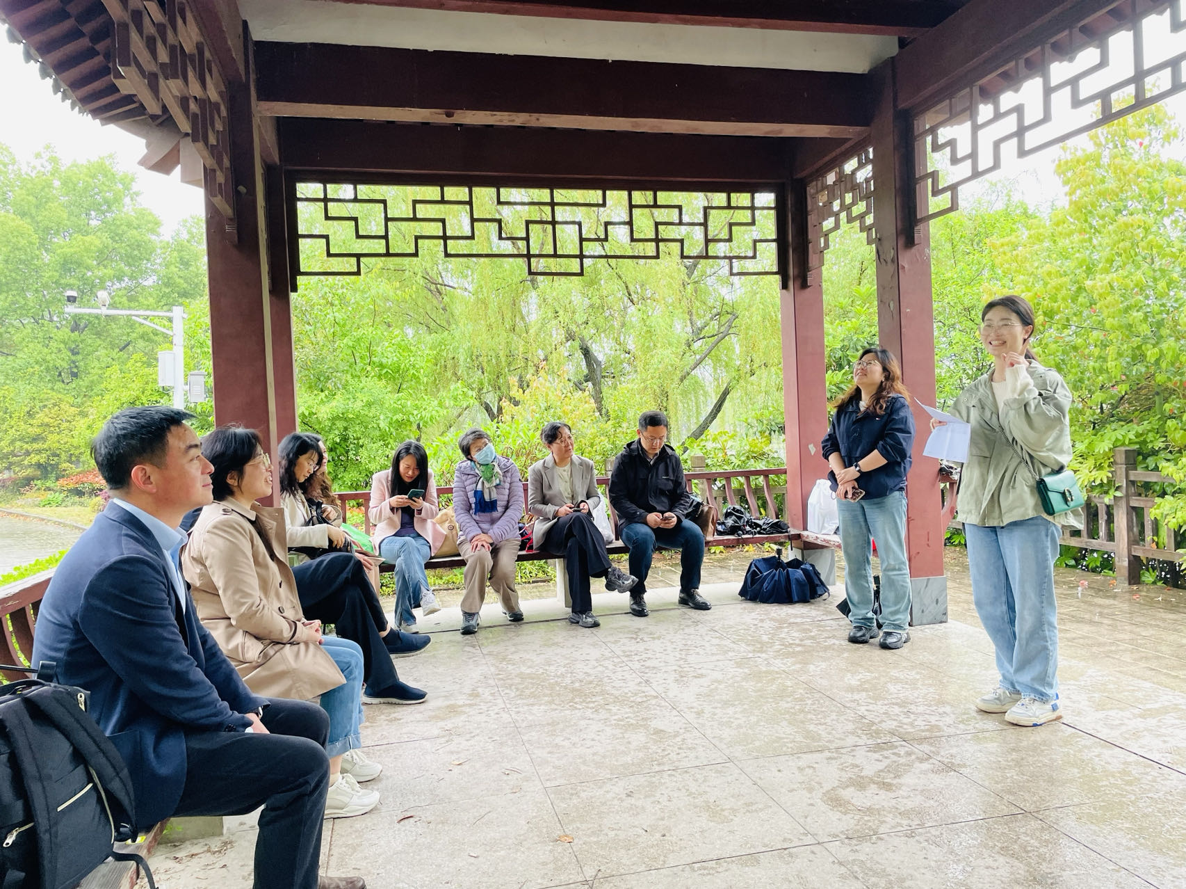 活动伊始,公司党委书记付蕾书记为活动致辞,强调了传承和弘扬中华优秀传统文化的重要性,领略古诗词的魅力。随后,公司教师们在雨中步入校园幽径,大家或驻足观赏,或拍照留念,享受难得的休闲时光。同时,工会还特意设置了古诗词竞答环节,题目结合春日花语,涵盖了众多经典古诗词篇章,有描述传统习俗的“爆竹声中一岁除,春风送暖入屠苏”,也有体现红楼美学的“偷来梨蕊三分白,借得梅花一缕魂”等等。老师们积极参与答题,现场氛围既紧张又充满乐趣。