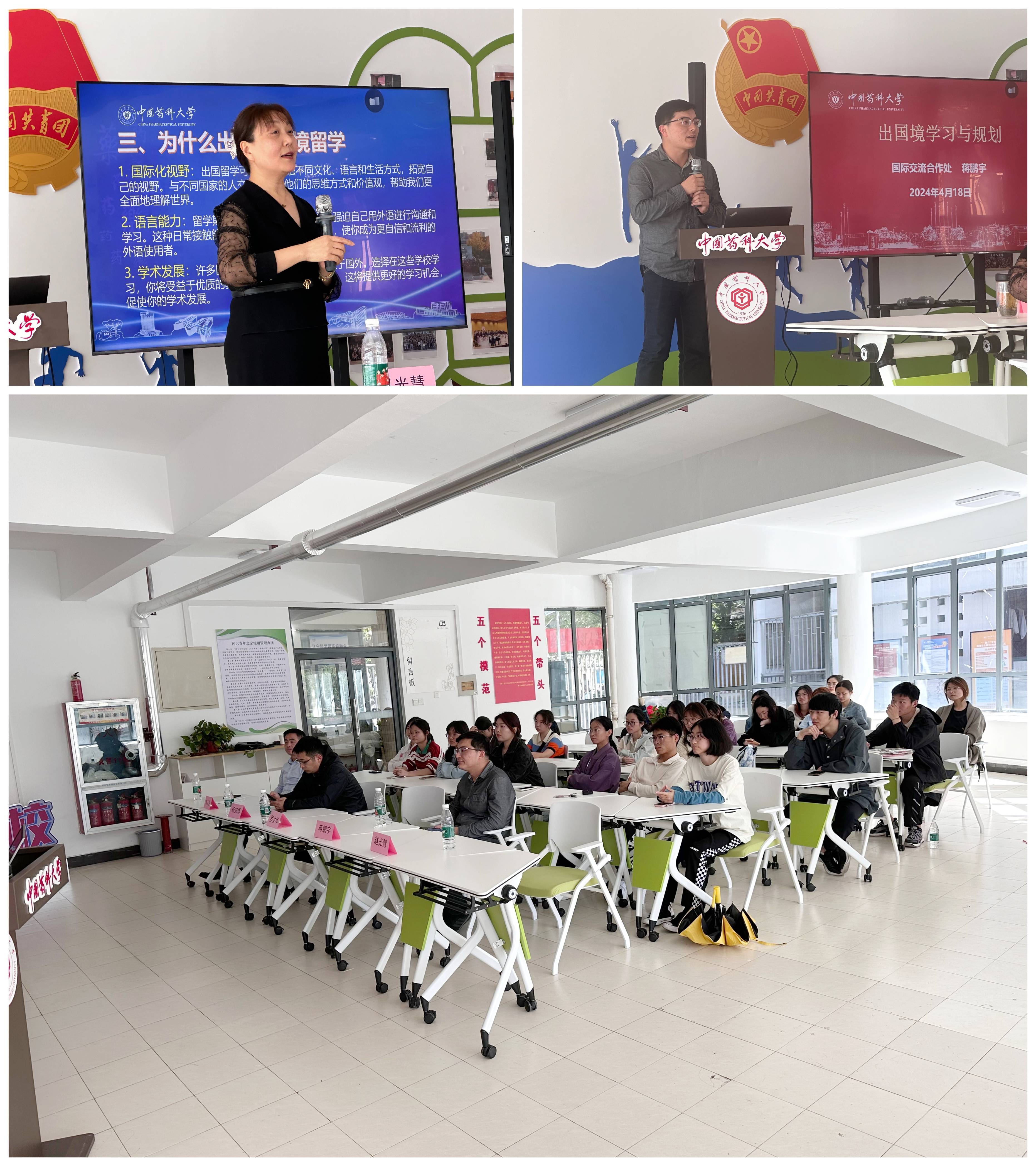 活动中,赵光慧经理以“语言能力提升与出国出境留学规划”为主题为同学们带来了精彩的交流分享。赵经理就语言能力的重要性及提升英语听说读写译能力的方法技巧为切入点,结合近年来公司申请留学的实际案例及职工归国优惠政策,就国内升学与出国出境留学进行了对比,盘点了当前留学的热门国家、地区,并就留公司校选择、申请流程、材料准备等做了详细讲解。随后,蒋鹏宇老师结合个人经历与同学们分享如何做好出国出境留学规划,并详细介绍公司当前的长短期出国出境留学项目以及“探索世界计划”奖学金情况。