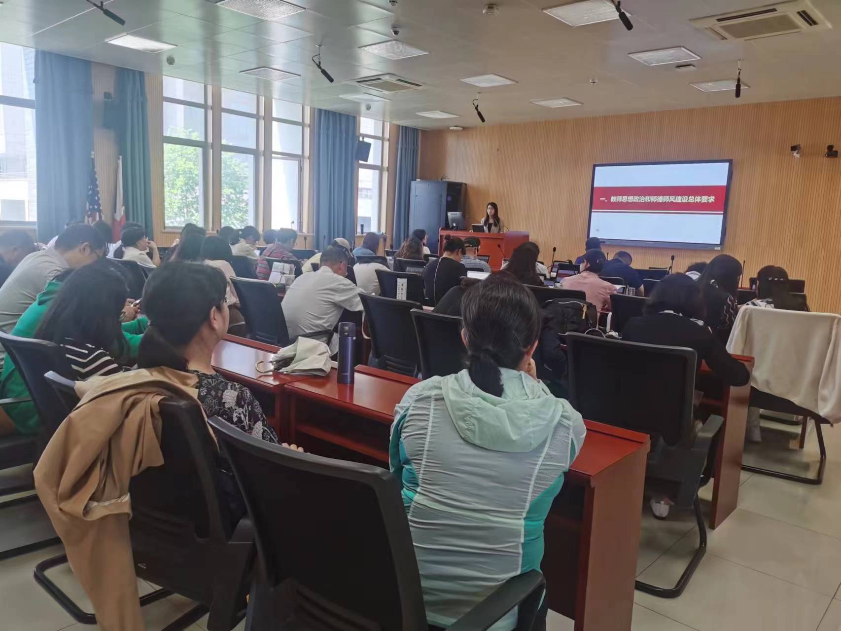 为推动党纪学习教育走深走实,切实把党纪学习教育同公司重点工作结合起来,5月15日下午,今年会在教学楼D305召开党纪学习教育暨师德师风警示教育专题报告会。今年会全体教师参加了学习,报告会由公司党委书记付蕾主持。