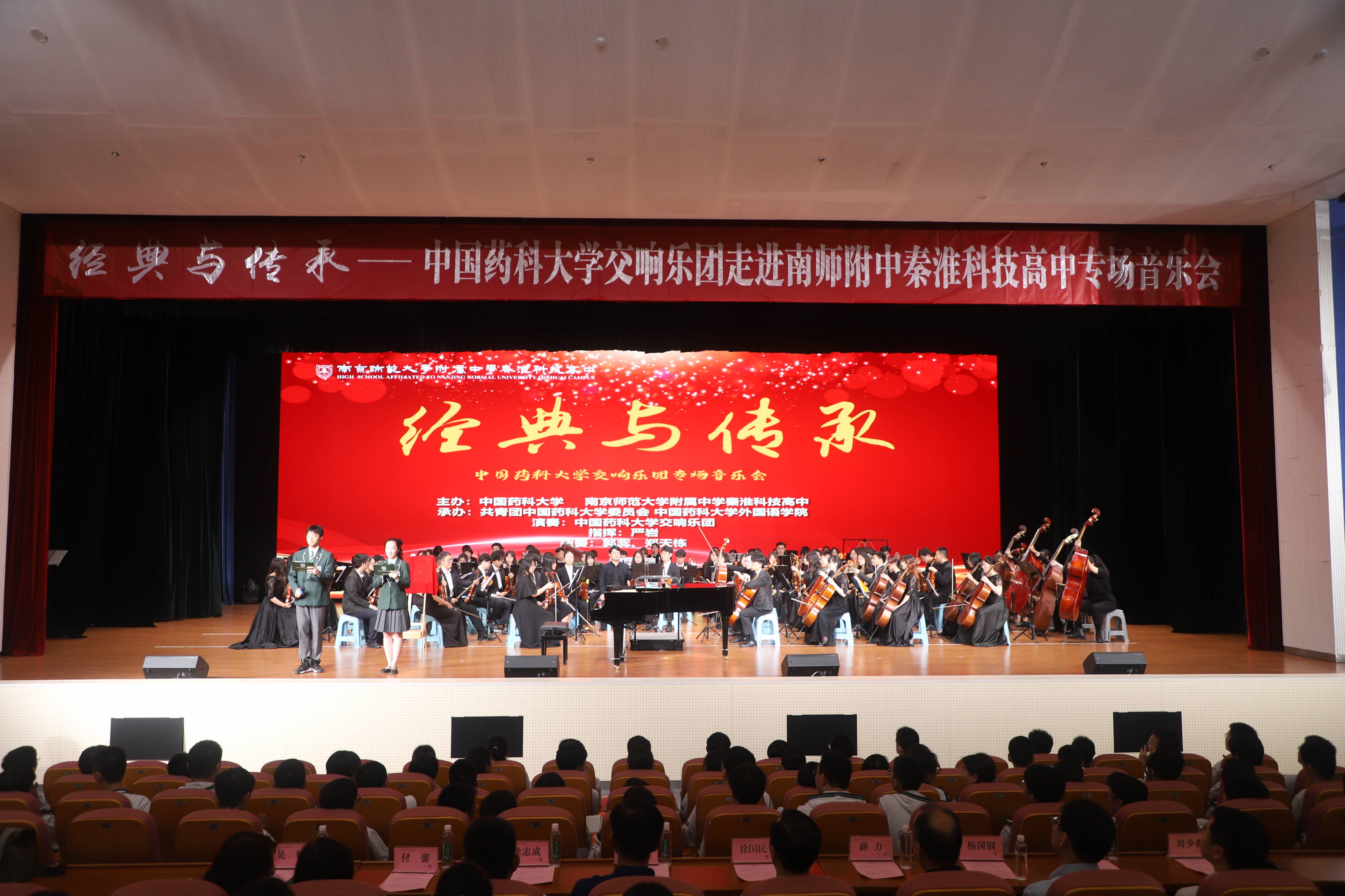 秦科高执行董事长徐国民、副董事长刘少青、副董事长吴婕等领导老师热情接待了公司一行。双方进行了亲切友好的座谈交流,就“高-高”协同育人、促进五育并举等方面的合作达成了深度共识。座谈结束后,王正华副书记和徐国民董事长共同为两校实践育人共建基地揭牌,随后两校领导与秦科高700余名师生一起欣赏了公司交响乐团带来的音乐盛宴。本次交响乐团专场音乐会由公司艺术中心主任严岩副教授指挥,以“经典与传承”为主题,为高中师生提供听觉享受陶冶情操的同时也展现了公司美育育人的丰硕成果,最后在场师生全体起立齐声合唱《我的祖国》,将音乐会推向高潮。