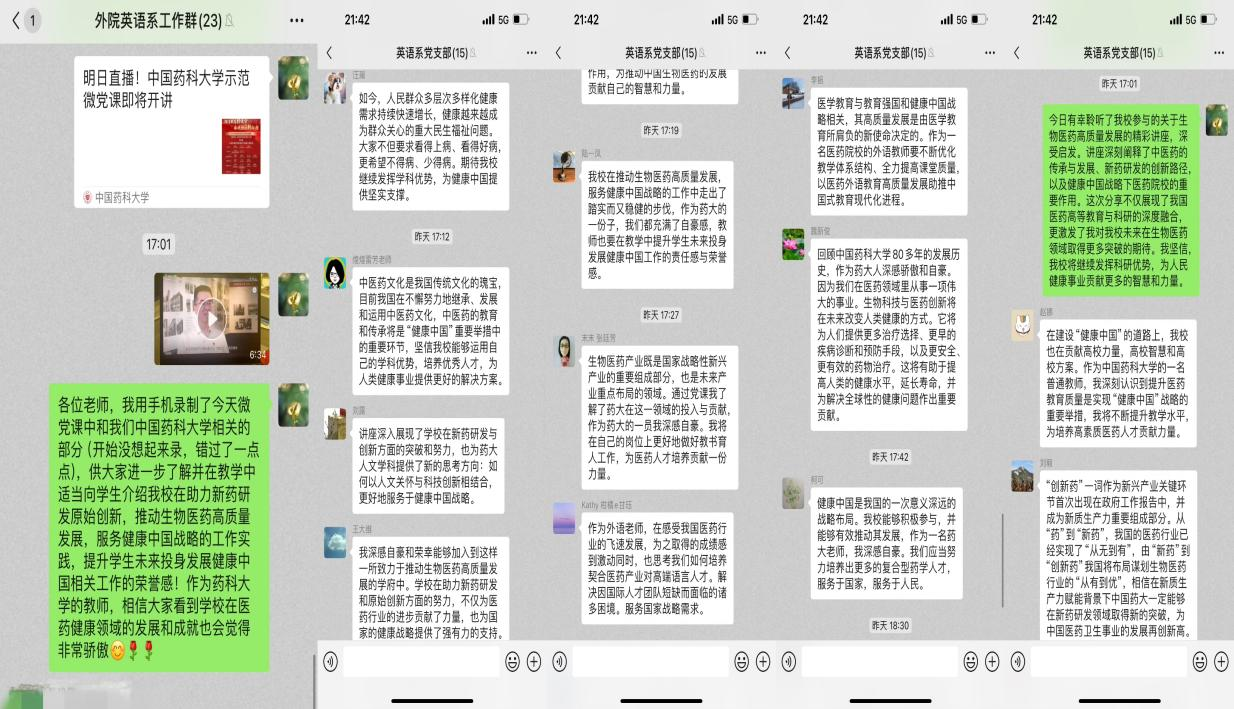 药学英语系、研究生英语教学部联合党支部书记陈菁表示,药学作为与人民群众生命健康息息相关的专业,其从业者必须具备高尚的职业道德和强烈的责任感。作为教师,应当在日常教学中融入职业素养教育,通过案例分析、专题讲座等形式,让员工深刻理解作为药学人的使命与担当,培养他们成为有爱心、有责任感的药学专业人才。