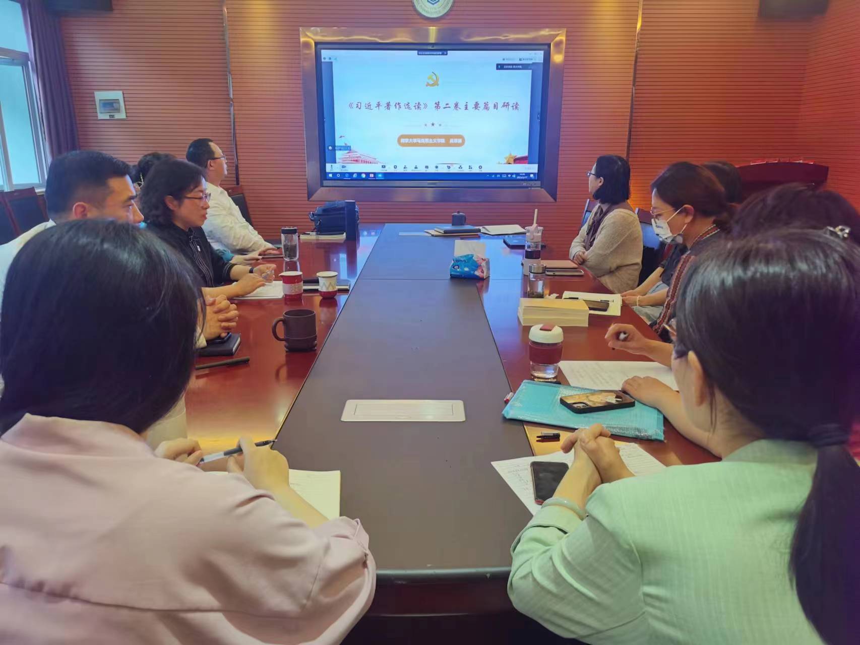 吴翠丽教授的专题党课题为《<习近平著作选读>第二卷主要篇目研读》。她从学习贯彻习近平新时代中国特色社会主义思想主题教育的重要意义说起,通过《习近平著作选读》两卷的对比,从政治、经济、文化、军事、外交等十个方面系统梳理了《习近平著作选读》第二卷的75个篇目,并针对其中一些主要篇目做了重点研读。最后吴翠丽教授对全体参加学习的人员提出了学习建议,希望大家原原本本学、贯通起来学、全面系统学、联系实际学,切实把思想和行动统一到习近平总书记重要讲话精神和党中央决策部署上来,真正把学习成果转化为工作动力落到实处。