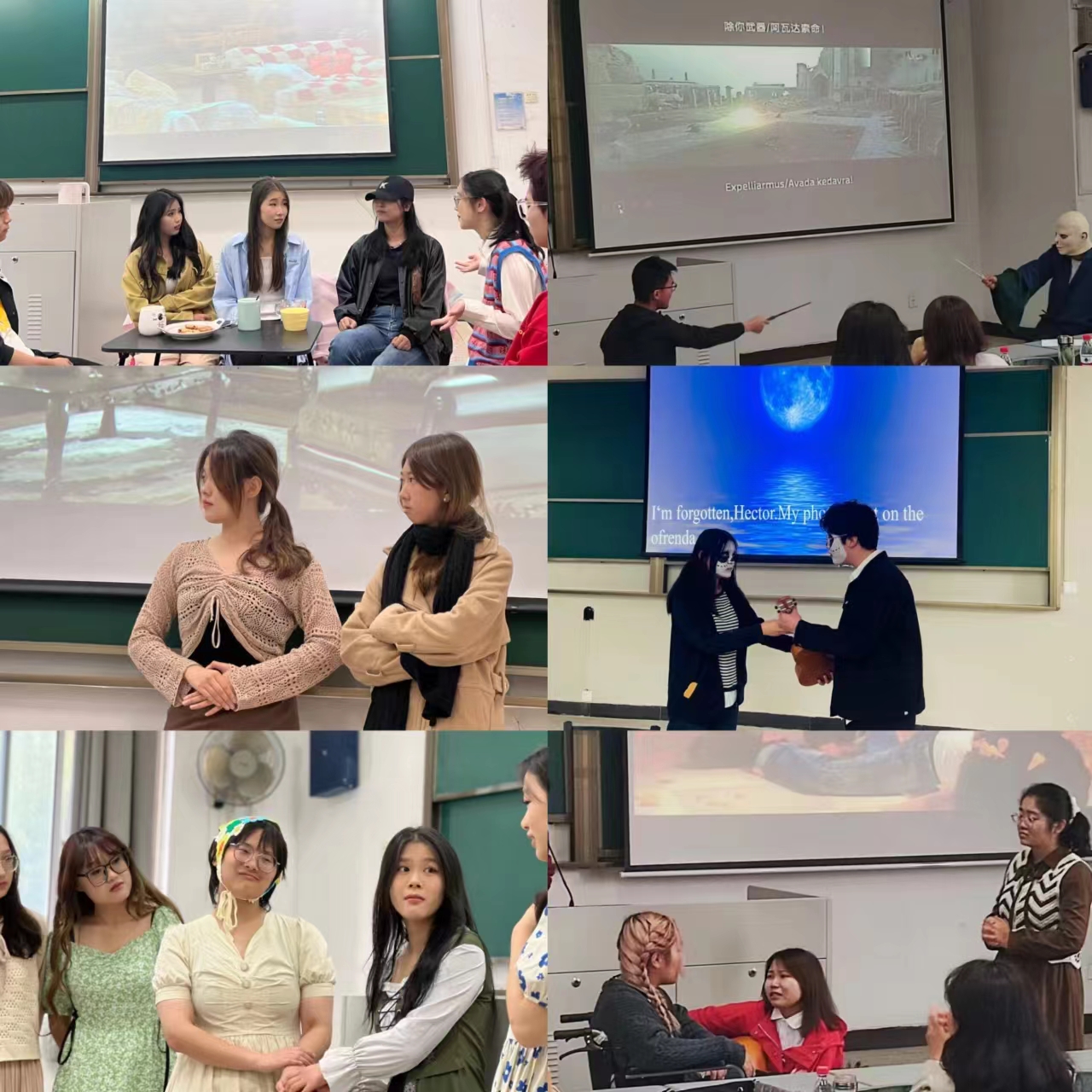 本次戏剧节初赛选材丰富,既有历史题材,又有名著节选;既有动画电影,又有经典剧目,同学们的表演精彩纷呈,赢得台下阵阵掌声与赞叹。其中,《南海十三郎》以一曲戏腔开场,演绎出天才编剧江誉镠传奇悲壮的一生;《红楼梦》重现刘姥姥进大观园这一重要情节,出色展现了刘姥姥大智若愚的小人物形象;《寻梦环游记》结合了民谣歌曲和墨西哥传统哈拉拜舞蹈,充分调动观众的热情;《楚门的世界》则为观众呈现了冲破荒诞世界的真相和勇气,引人深思。